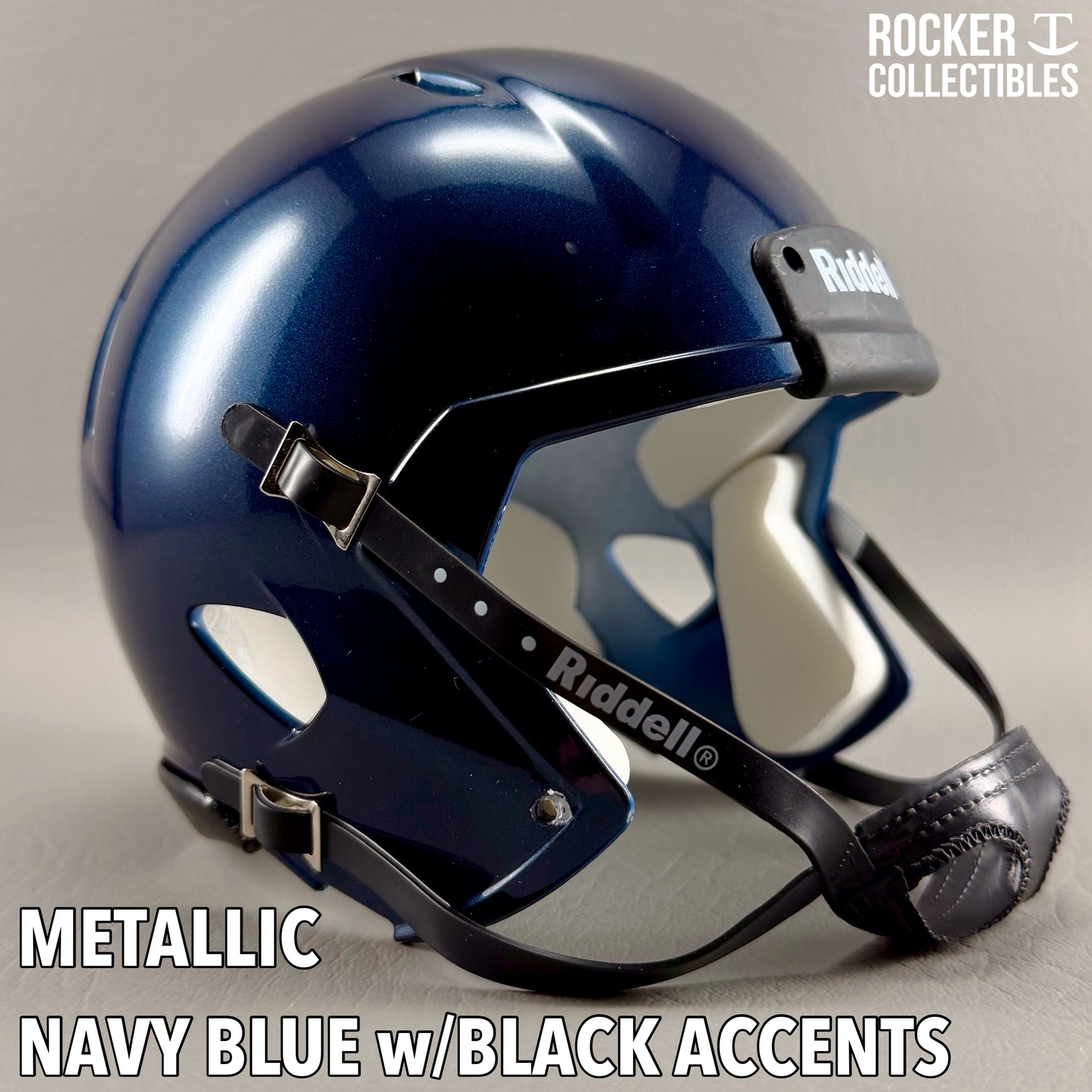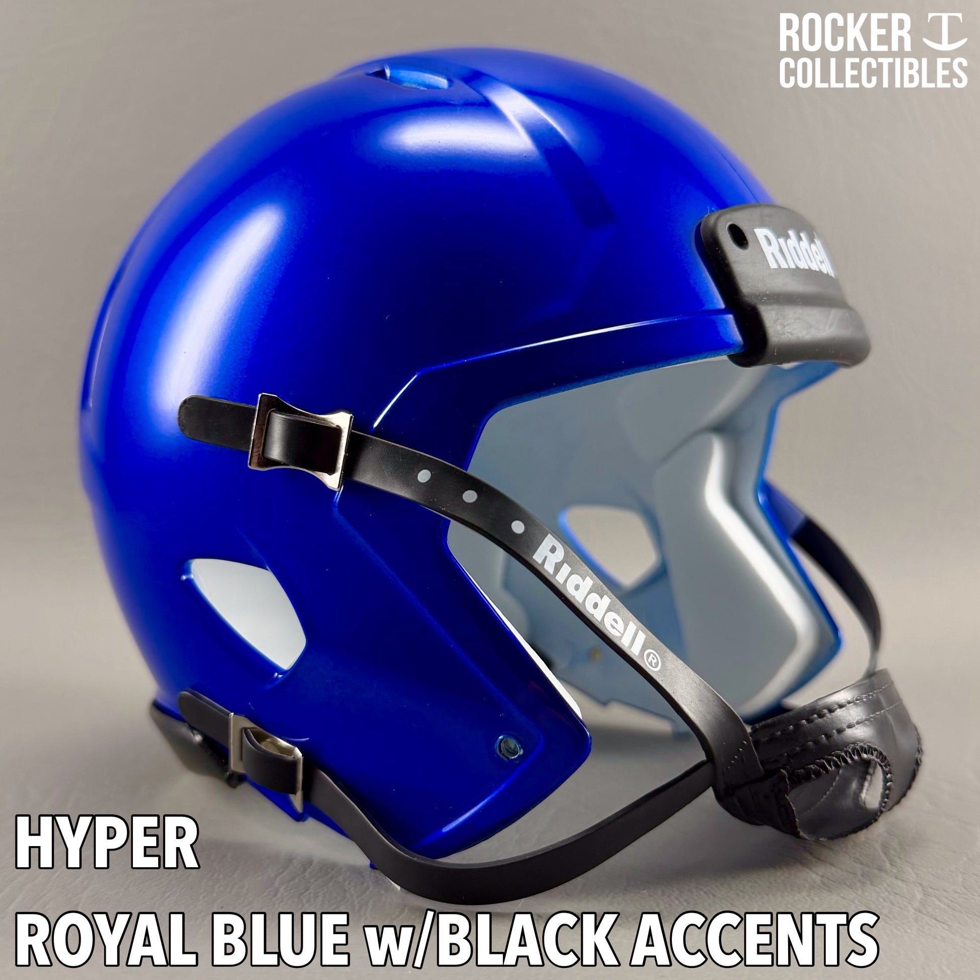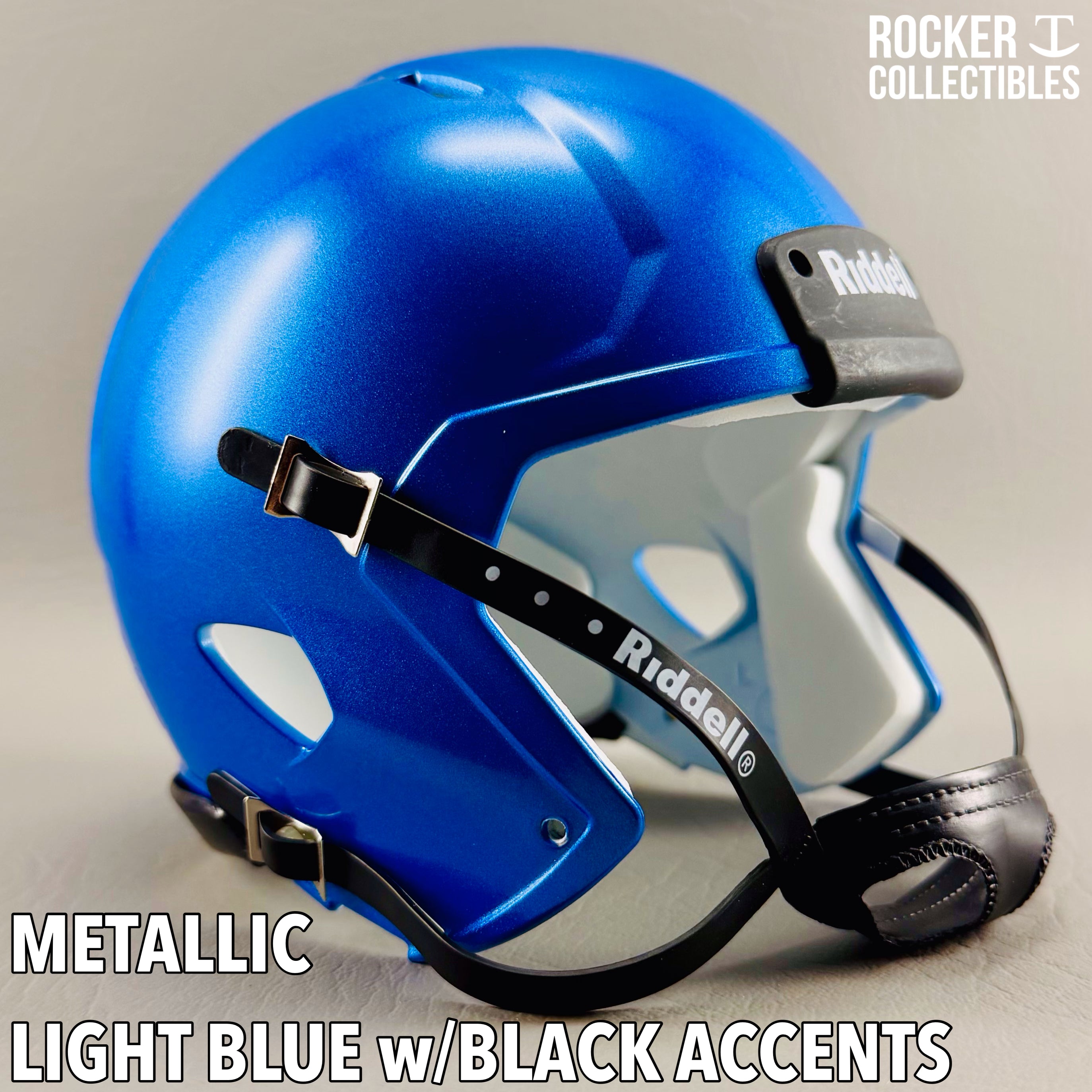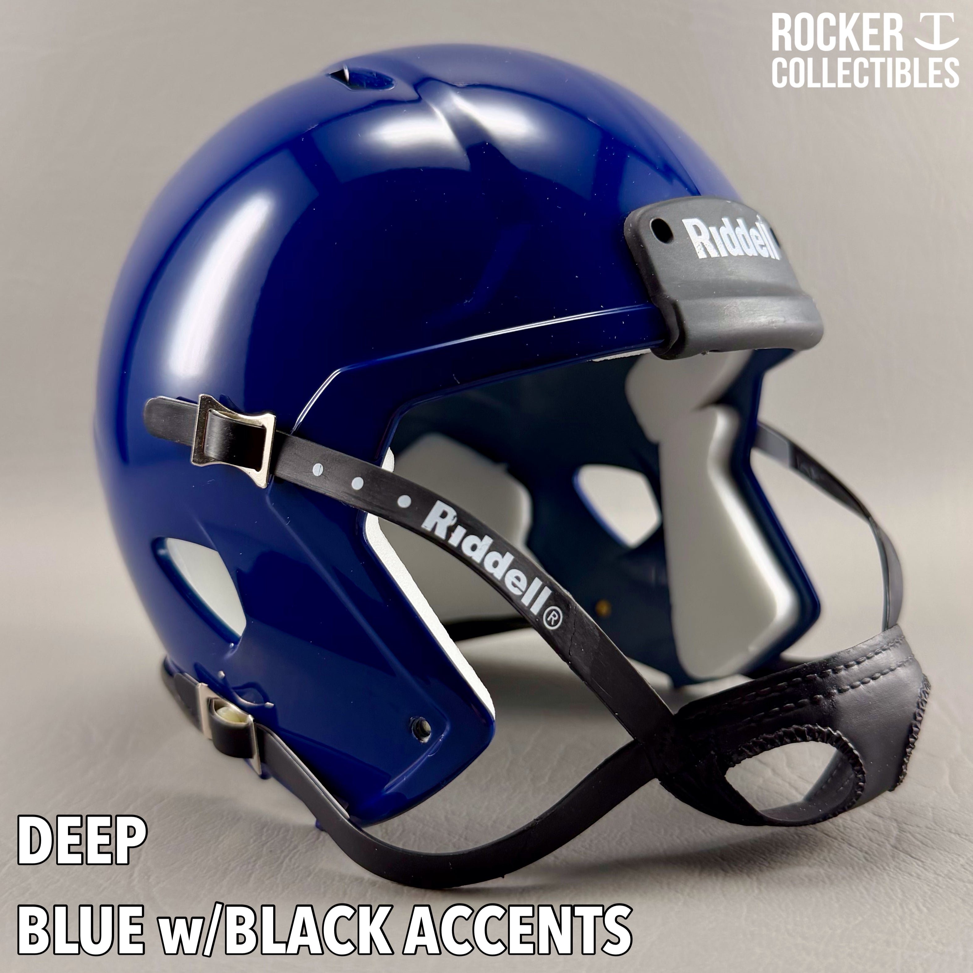 **Some shells now come with a black Riddell label on the white chinstrap. "Pro Style" and Black Accents Shells are not affected by this change. Please email before making your purchase if this is a concern.