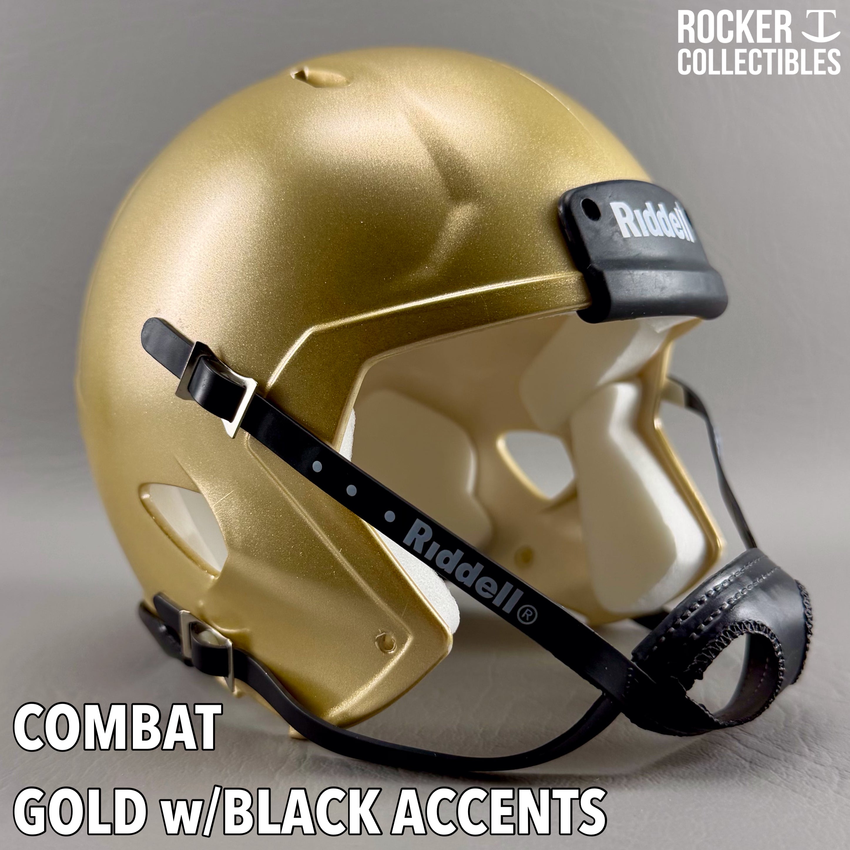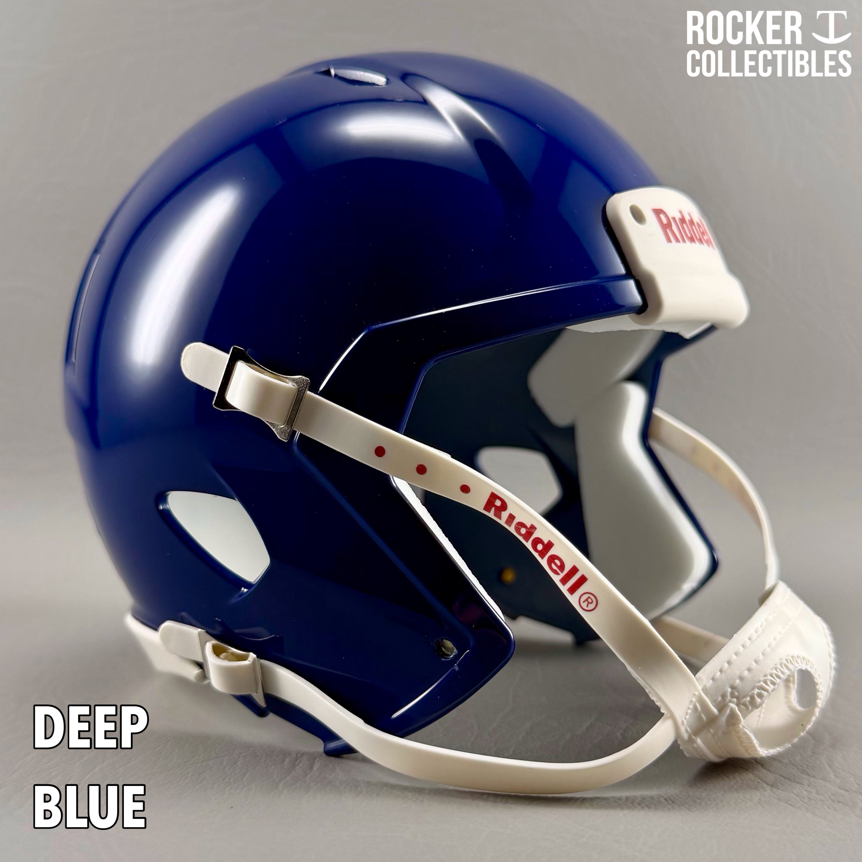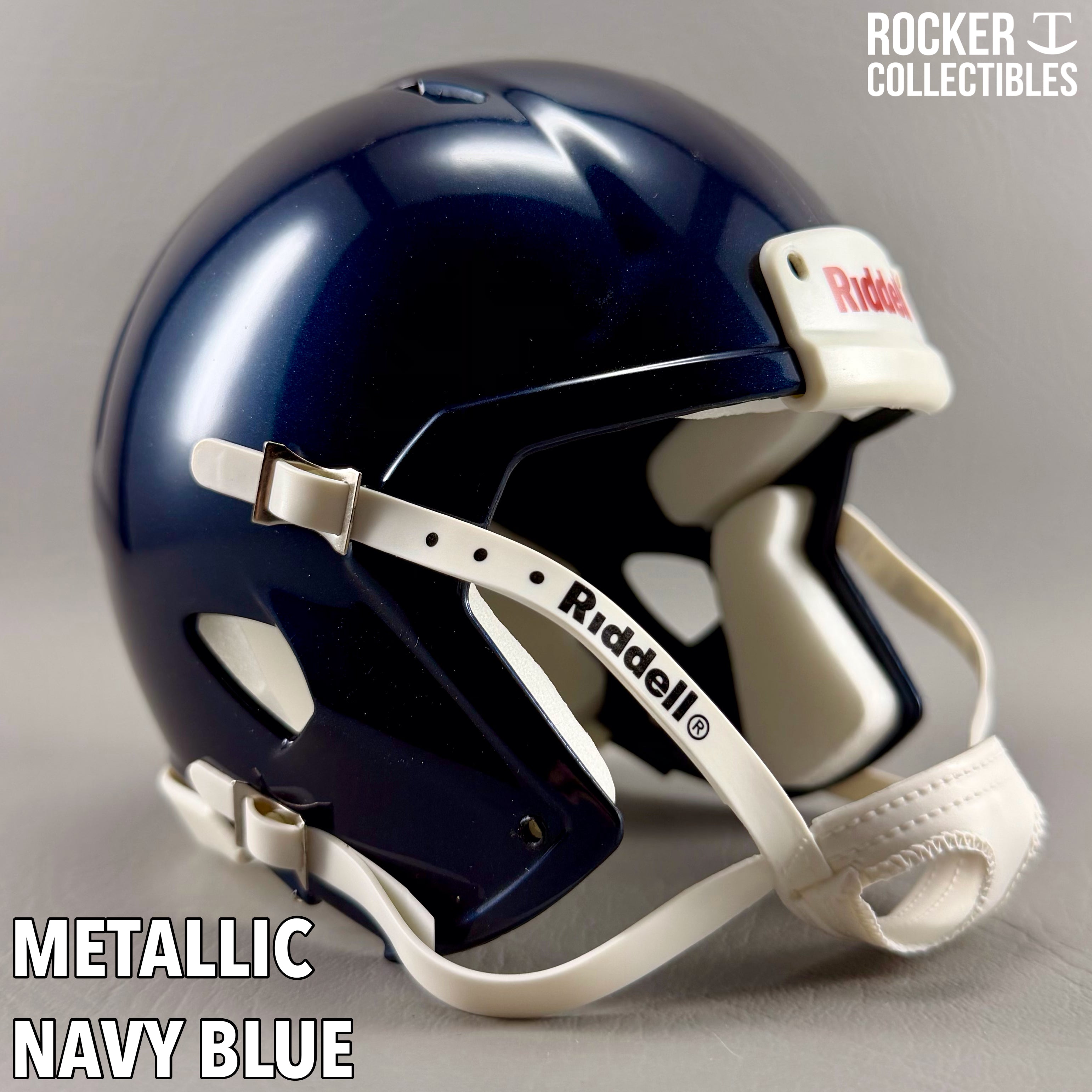 **Some shells now come with a black Riddell label on the white chinstrap. "Pro Style" and Black Accents Shells are not affected by this change. Please email before making your purchase if this is a concern.