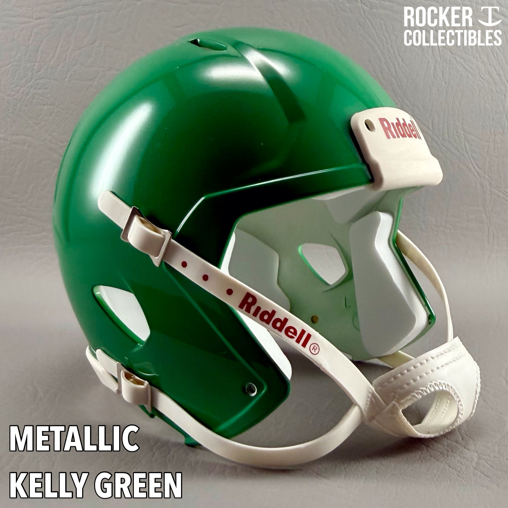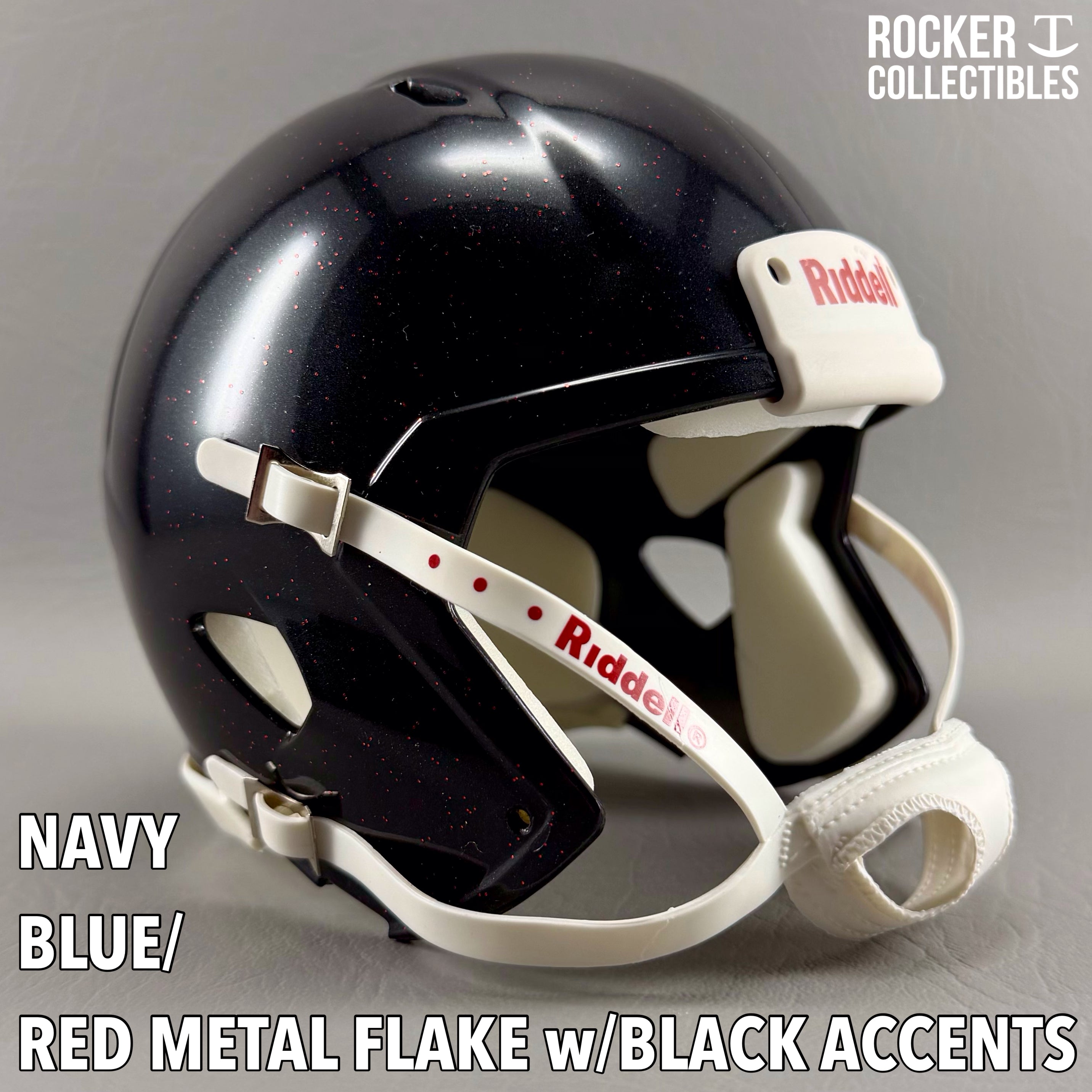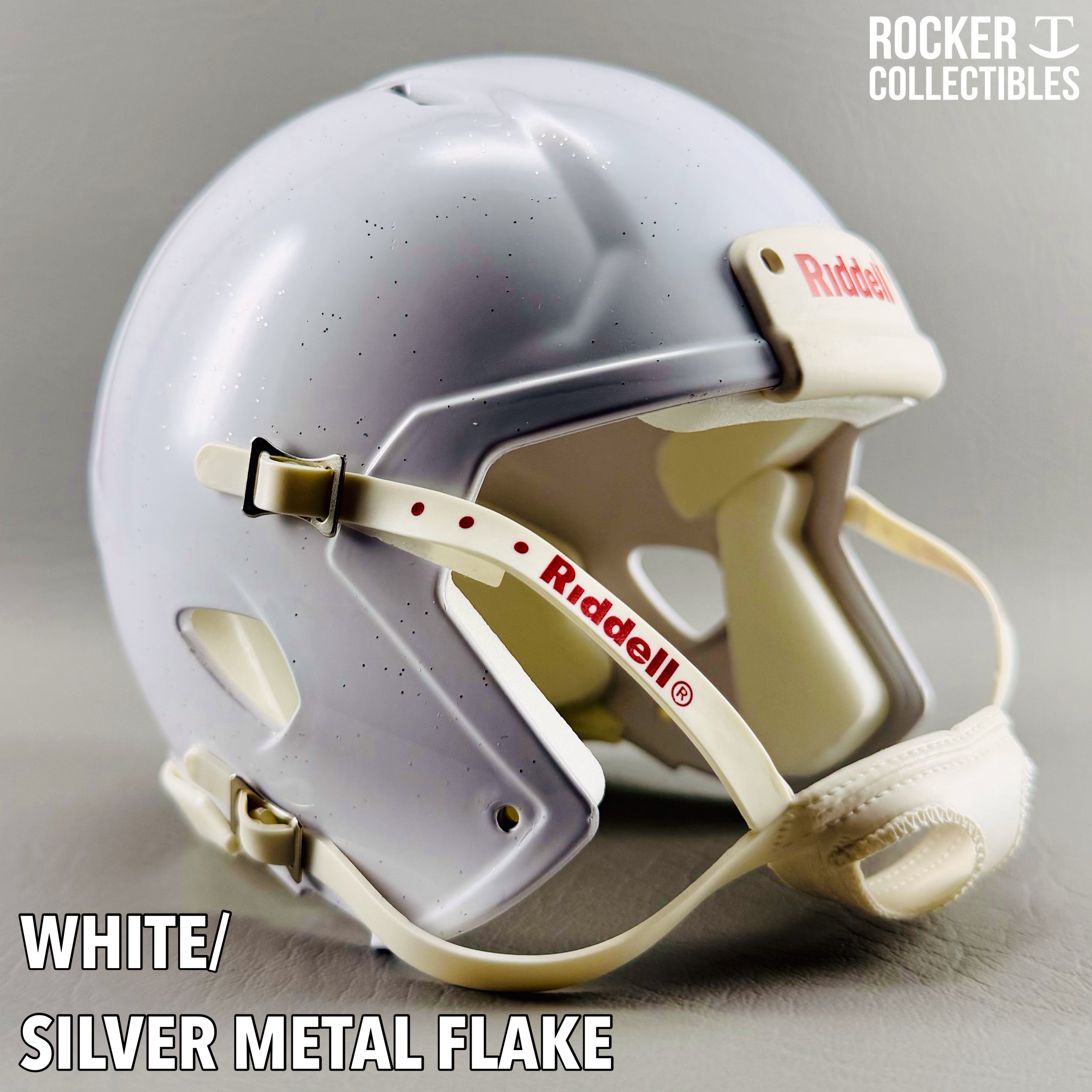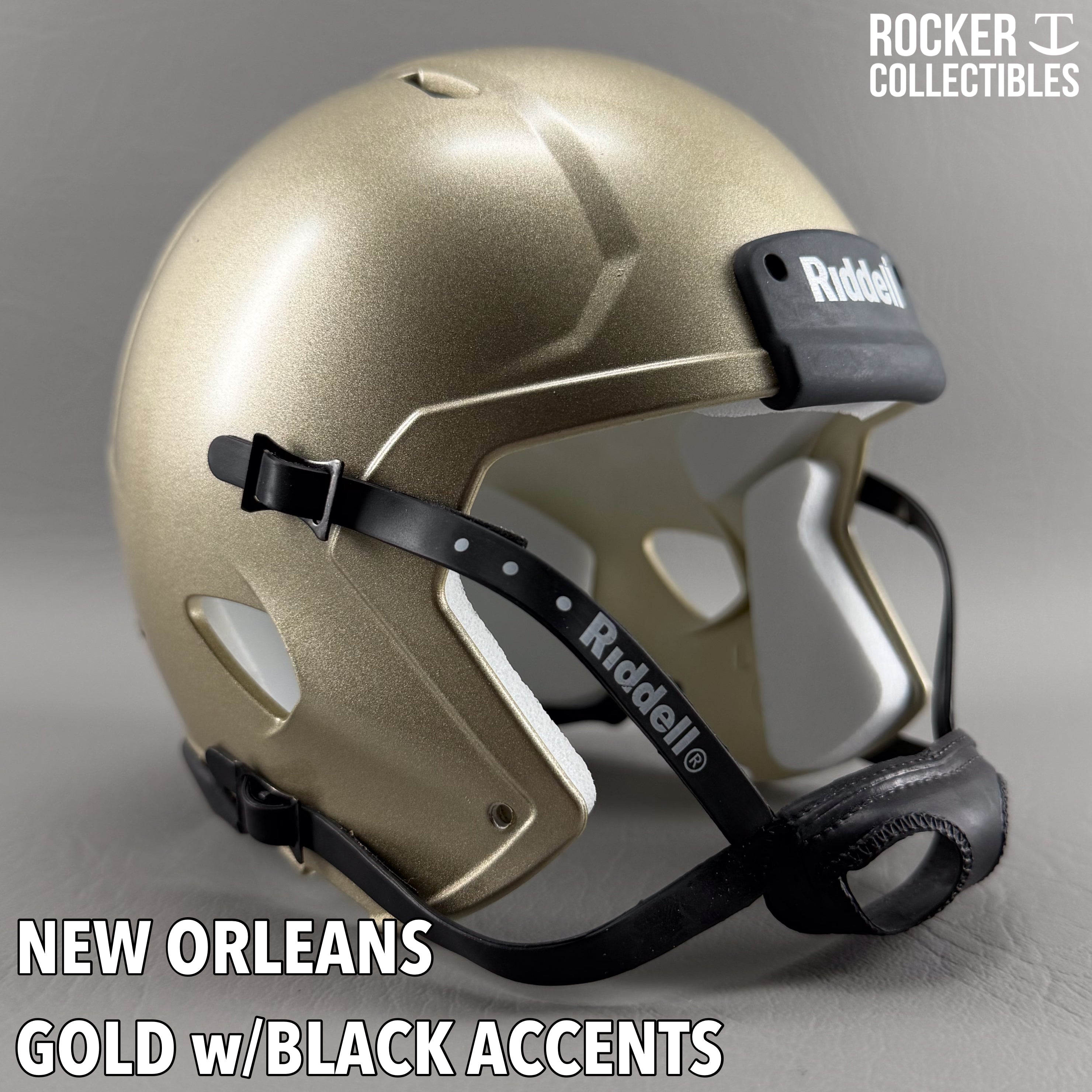 **Some shells now come with a black Riddell label on the white chinstrap. "Pro Style" and Black Accents Shells are not affected by this change. Please email before making your purchase if this is a concern.