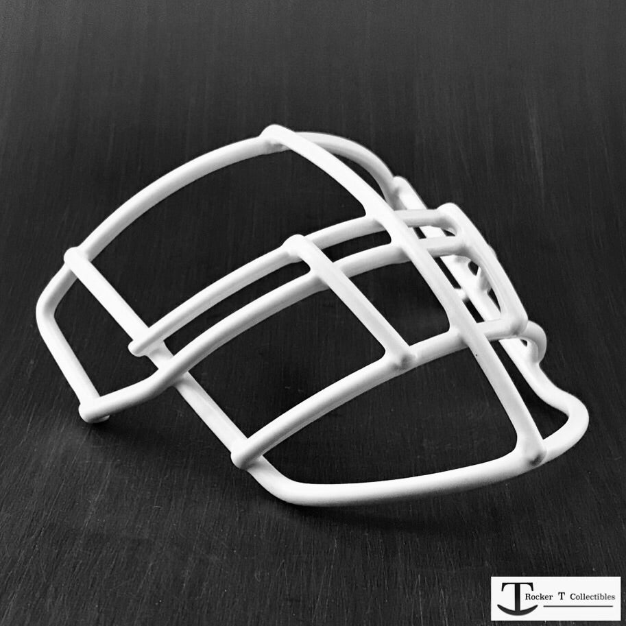 Introducing the first-ever custom Throwback 70’s Era NJOP-DW metal mini helmet facemask, handcrafted at Rocker T Collectibles. Each mask receives an authentic facemask coating—just like the originals! Available in every color by custom request, though not all colors are stocked. Designed to fit Schutt XP, Schutt Air, and Riddell VSR4 mini helmets, this facemask adds a bold, authentic touch to your mini helmet. Facemask clips are not included.