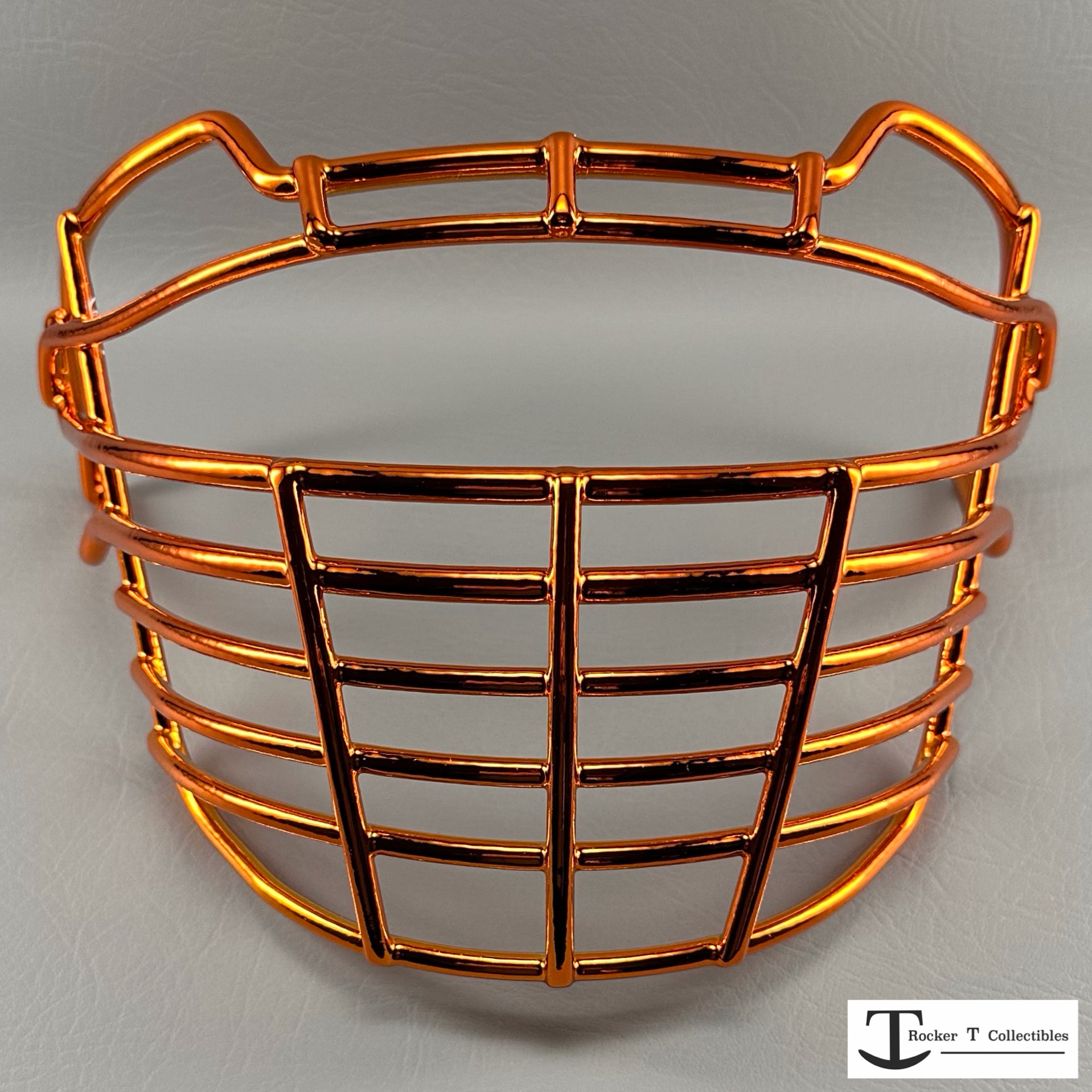 It’s finally here! Rocker T is now your go-to destination for professionally chromed full-size facemasks. This Titanium Orange Chrome Vengeance facemask features the same high-quality chroming used by your favorite teams, giving your helmet a sleek, premium look.