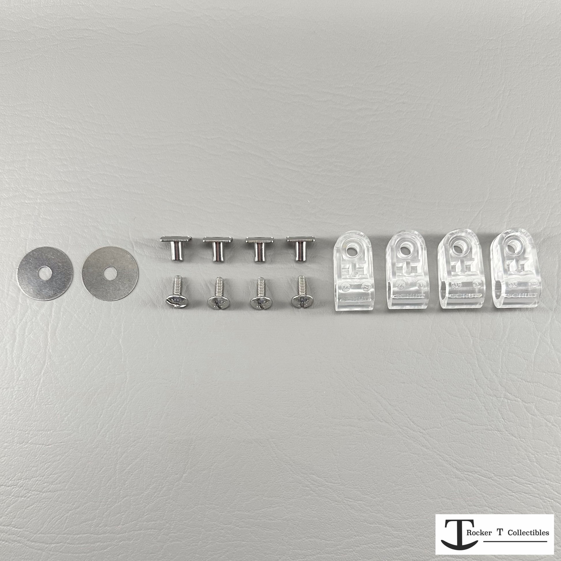 Are your facemask clips looking worn or yellowed? Refresh your helmet with a genuine set of Schutt ArmourGuard Elite Facemask Clips from Rocker T. Each kit includes 4 clips, 4 T-Nuts, 2 washers, and 4 mounting screws for a complete upgrade. These clips fit a wide range of helmets including Schutt XP Q10, Vengeance models, DNA, F7 VTD, Super Pro, all Schutt Youth helmets, Riddell VSR4, Rawlings, SG, and Adams. Note: They do NOT fit Schutt helmets with the 1/4 Turn system or helmets from Riddell, Xenith, or Vicis due to hole alignment differences.