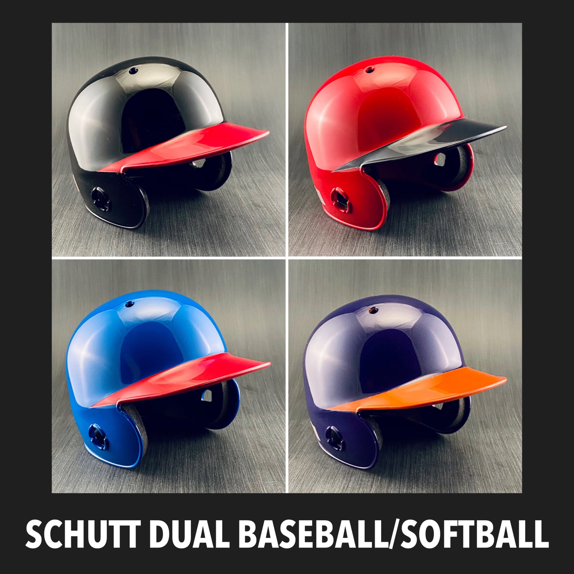 Design your own Baseball or Softball Mini Helmet with these Schutt Mini Batting Helmets, featuring authentic double ear flaps and black interior padding. These helmets are a closeout item and cannot be returned. Colors may vary slightly from what you see on your screen. Schutt has ceased all collectible production, so any remaining helmet colors won’t be restocked once sold. Secure the color you want now before it’s gone—don’t let your perfect shade slip away!