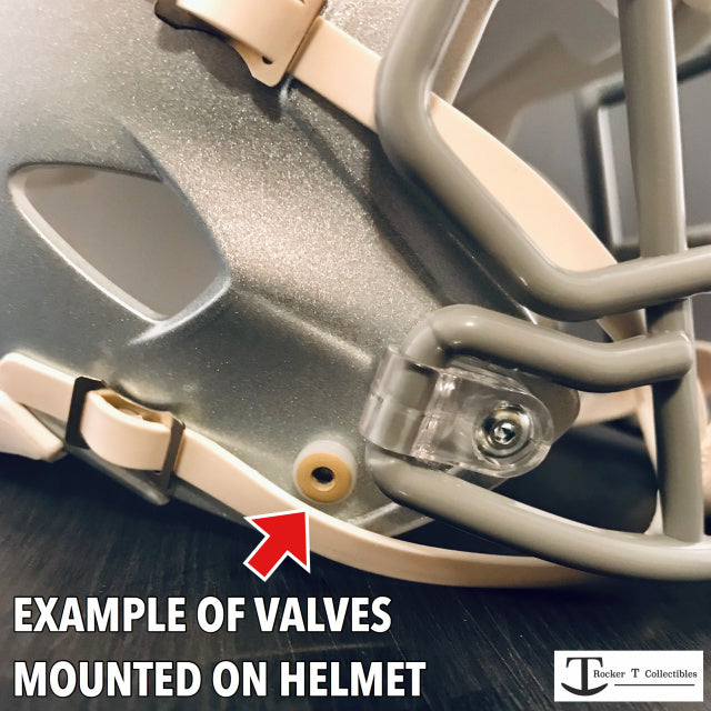 Transform your Riddell Speed Mini Helmet with the Rocker T Simulated Air Valves Kit. This set provides two realistic air valves designed to fit between the facemask corner and chinstrap, adding bold detail to your mini helmet. Installation requires drilling two precise 1/8" holes into the helmet shell—don’t worry, we also offer the exact drill bit you need to get the job done right. Take your mini helmet’s authenticity to the next level with this daring upgrade.