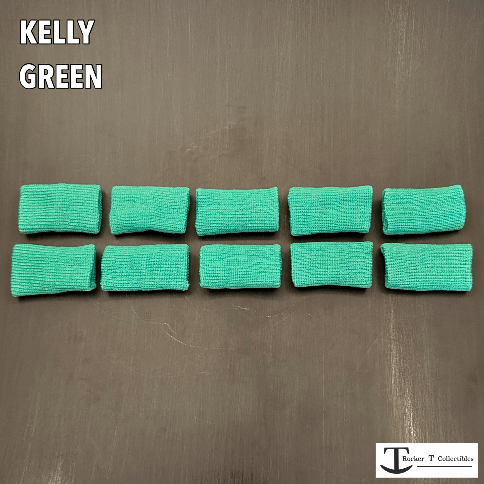 Rocker T Kelly Green "Bulk Buy" Mini Helmet Chinstrap Pads are an exclusive accessory designed for collectors with large collections. This set includes 10 chinstrap pads, perfect for adding a splash of color or enhancing the realism of your mini helmets. Installation is quick and easy: remove one side of the chinstrap, slide it through the pad, pull it over the chin, and reattach the strap. Bold customization made simple!
