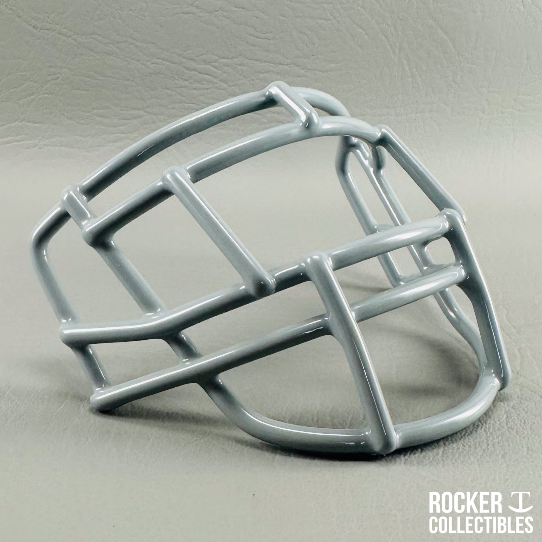 The Throwback 80's Era CU-EGOP metal mini helmet facemask builds on our 70's design with added metal sections on the sides for facemask clips, capturing the authentic style of that era. It also has a custom double wire center section found on some very obscure models in the 80's. Crafted from metal and coated with plastic like full-size facemasks, it fits Schutt Air and Riddell VSR4 mini helmets. Available in multiple colors, this facemask adds a bold, genuine detail to your custom mini helmet. Facemask clips are not included.