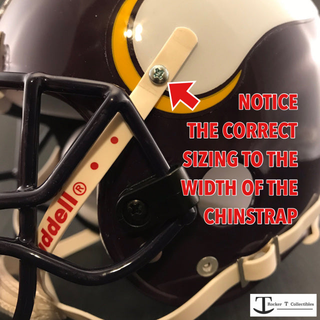 Upgrade your Riddell Speed Mini Helmet with Rocker T Chinstrap Dome Screws for an authentic, game-ready look. These specially crafted screws feature larger threads for easy installation into plastic helmets. Just punch a hole in your chinstrap, then screw into the helmet’s existing hole—or drill a new one with a 3/32" bit for a perfect fit. Their low-profile heads stay neatly within the chinstrap’s width, avoiding any bulky appearance, while their length ensures they won’t penetrate too far inside. Perfect for adding bold realism to your mini helmet collection.