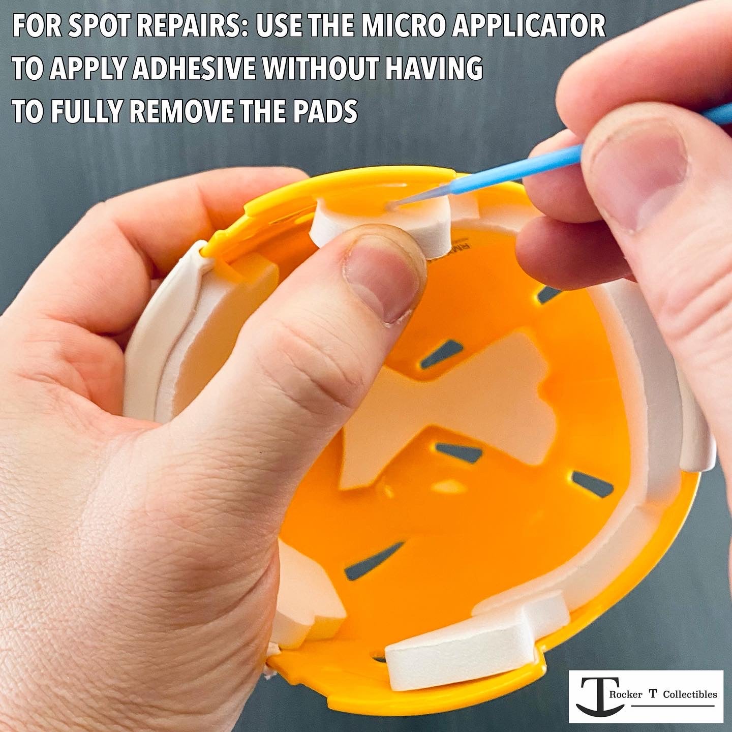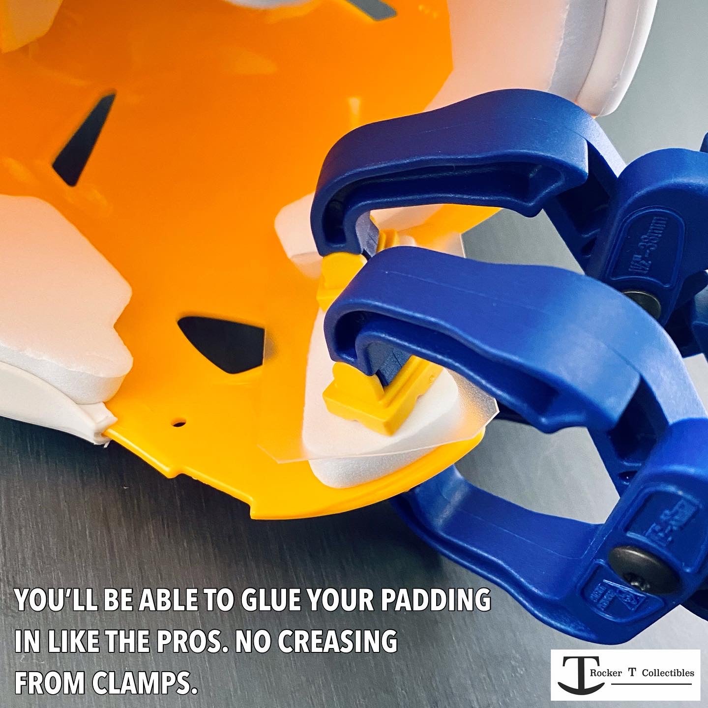 Got a 3D printed mini helmet or want to upgrade your mini helmet with black interior pads? Rocker T has you covered with our Mini Helmet Padding Installation Kit. This all-in-one kit includes everything you need to add or repair padding on any mini helmet style. Perfect for restoring old autographed helmets with worn or sticky pads—just clean off the old adhesive and use our kit for a fresh, clear-dry finish. Clamps help secure pads, though the center pad may need to be held by hand or a small weight for 5-10 minutes before curing. The kit includes clamps, adhesive, spreader, applicators, and crease protectors to make your collection look its absolute best!