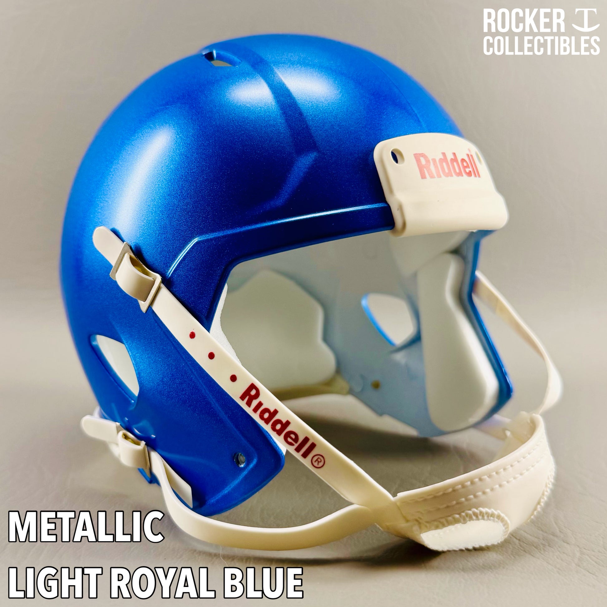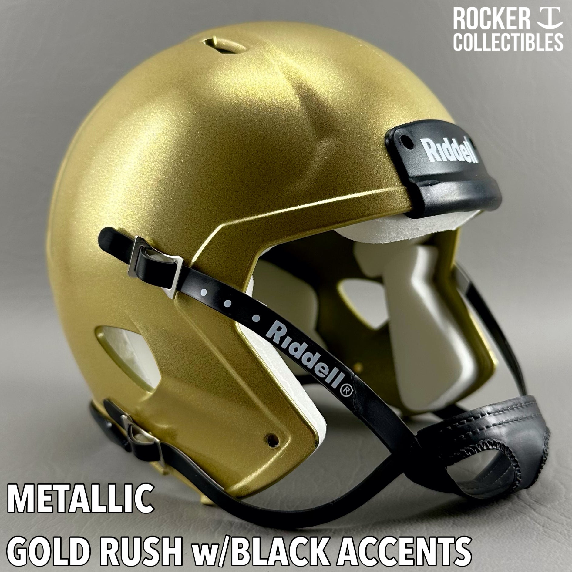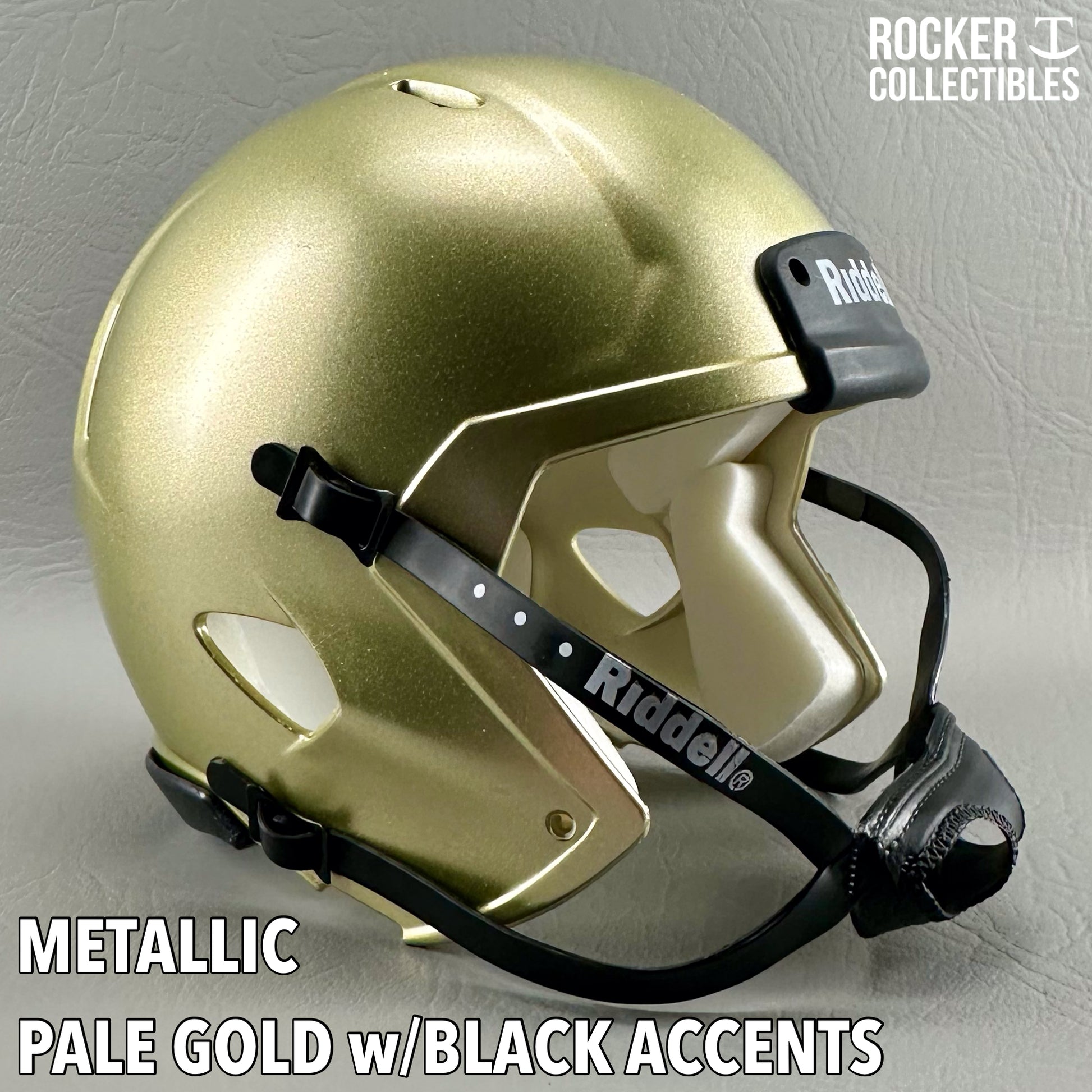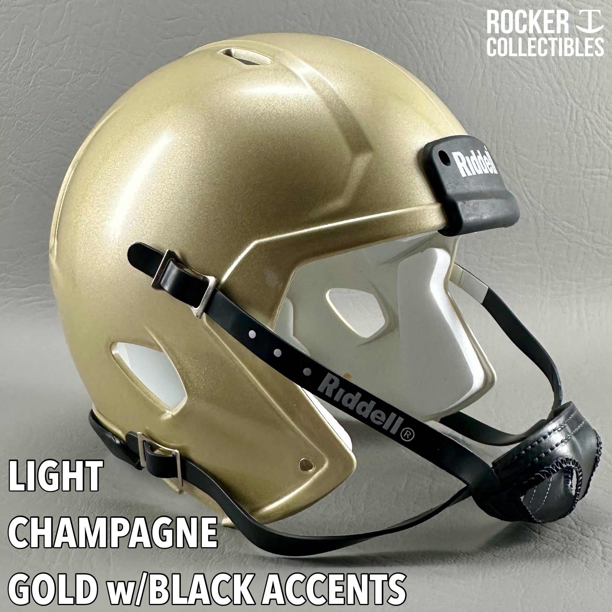 **Some shells now come with a black Riddell label on the white chinstrap. "Pro Style" and Black Accents Shells are not affected by this change. Please email before making your purchase if this is a concern.