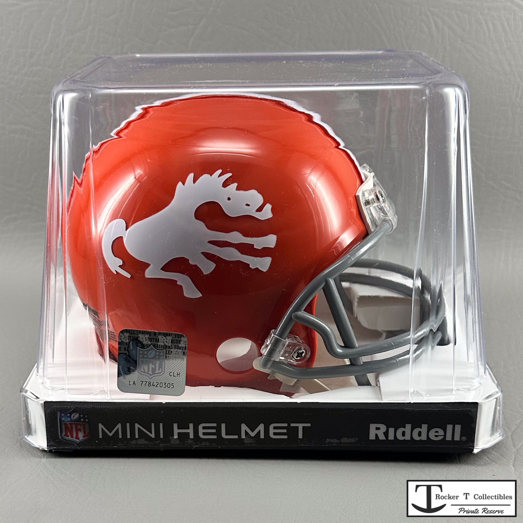 Welcome to the Rocker T NFL Private Reserve, featuring rare, out-of-production NFL Mini Helmets like the Riddell Denver Broncos 1962-1965 Throwback VSR4 Mini Helmet. These brand new, unopened New Old Stock items are hard-to-find treasures for collectors. When you spot that special mini helmet you’ve been searching for, act quickly. Don’t hesitate and risk missing out on this unique addition to your collection.