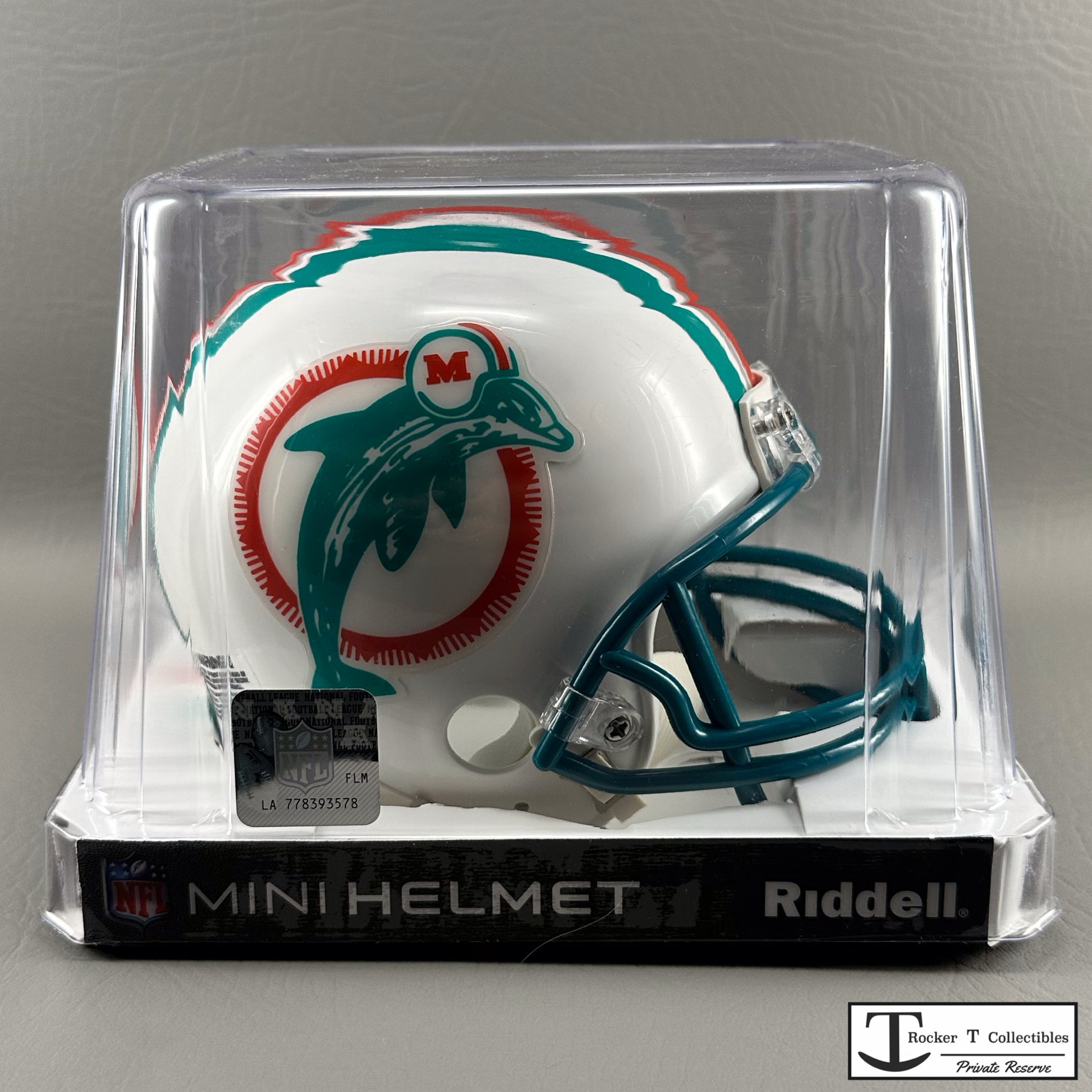 Discover the Rocker T NFL Private Reserve, home to rare, out-of-production NFL Mini Helmets like the Riddell Miami Dolphins 1980-1996 Throwback VSR4 Mini Helmet. These brand new, unopened New Old Stock items are prized collectibles. When you find that elusive mini helmet you’ve been searching for, act fast. Don’t wait and risk missing out on adding this unique piece to your collection.