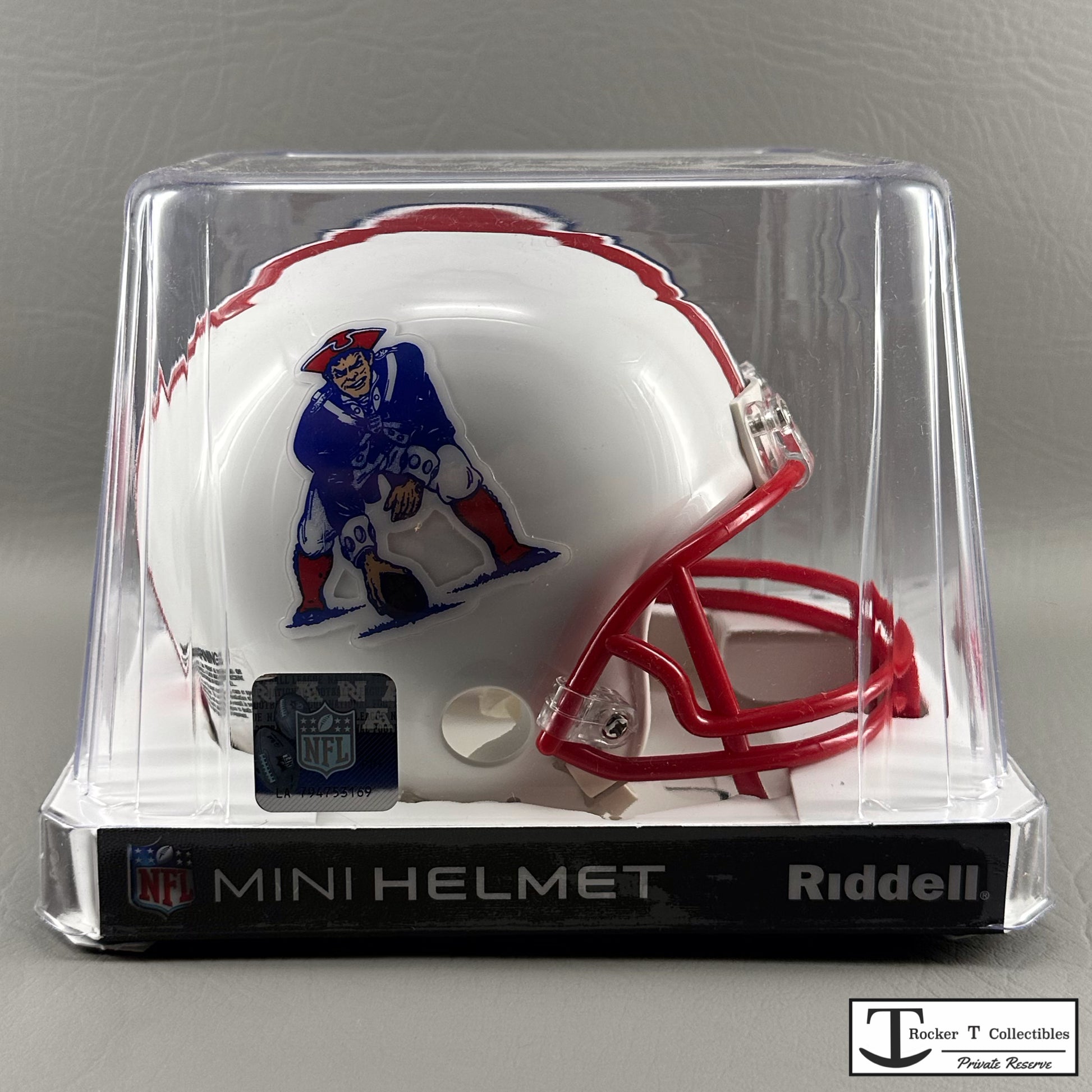 Welcome to the Rocker T NFL Private Reserve, featuring exclusive, out-of-production NFL Mini Helmets like the Riddell New England Patriots 1990-1992 Throwback VSR4 Mini Helmet. These brand new, unopened New Old Stock items are rare finds for collectors. When you spot that special mini helmet you’ve been searching for, act quickly. Don’t hesitate and risk missing out on this unique addition to your collection.