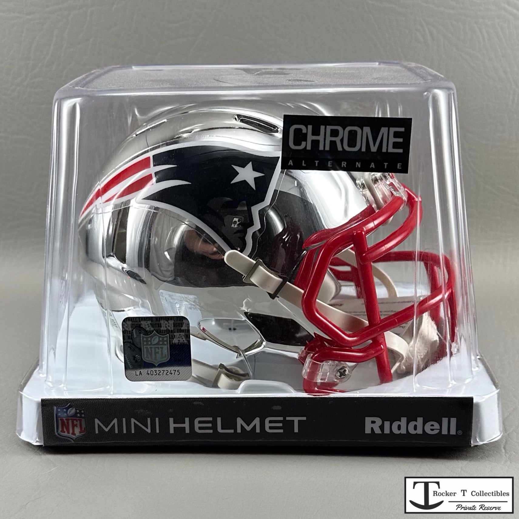 Discover the Rocker T NFL Private Reserve, home to rare, out-of-production NFL Mini Helmets like the Riddell New England Patriots Chrome Speed Mini Helmet. These brand new, unopened New Old Stock items are prized collectibles. When you find that elusive mini helmet you’ve been searching for, act fast. Don’t wait and risk missing out on adding this unique piece to your collection.