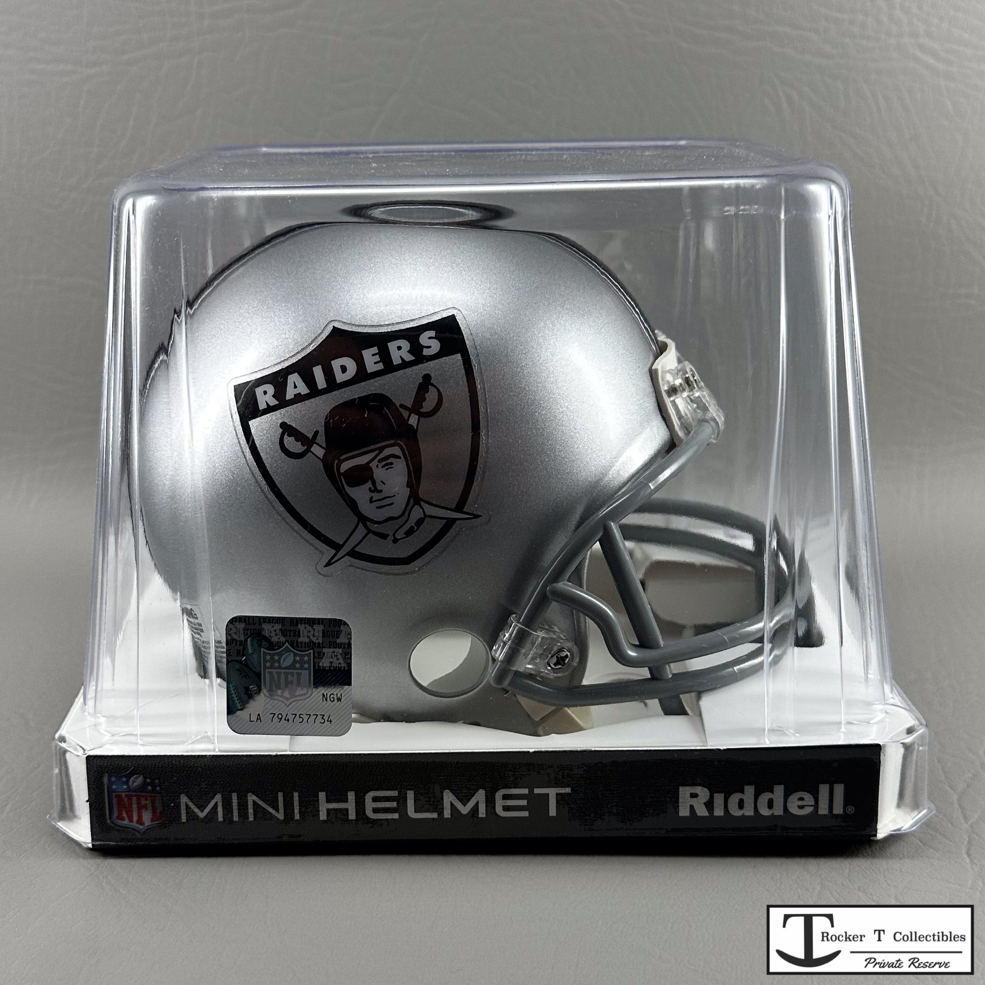 Step into the Rocker T NFL Private Reserve to find rare, out-of-production NFL Mini Helmets like the Riddell Oakland Raiders 1963 Throwback VSR4 Mini Helmet. These brand new, unopened New Old Stock items are prized collectibles. When you spot that elusive mini helmet you’ve been hunting for, act fast. Don’t wait and risk missing out on adding this unique piece to your collection.