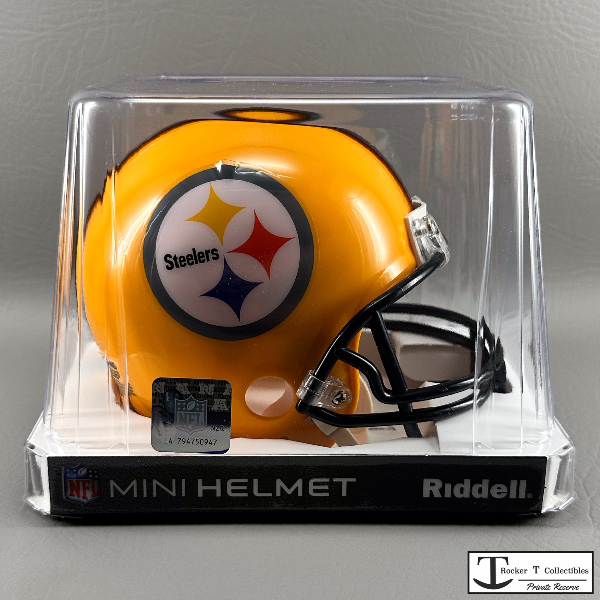 Welcome to the Rocker T NFL Private Reserve, featuring rare, out-of-production NFL Mini Helmets like the Riddell Pittsburgh Steelers 75th Anniversary Throwback VSR4 Mini Helmet. These brand new, unopened New Old Stock items are hard-to-find treasures for collectors. When you find that special mini helmet you’ve been searching for, act quickly. Don’t hesitate and risk missing out on this unique addition to your collection.