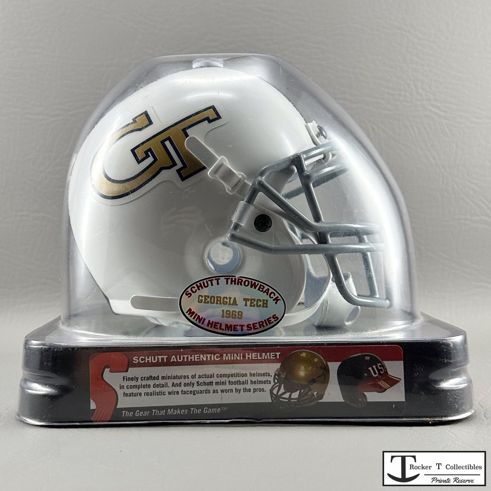 Step into the Rocker T NCAA Private Reserve to find rare, out-of-production NCAA Mini Helmets like the Schutt Georgia Tech Yellow Jackets 1969 Throwback Air Mini Helmet. These brand new, unopened New Old Stock items are true collector’s treasures. When you spot that hard-to-find mini helmet, don’t hesitate. Act quickly to claim this unique piece before it disappears from your collection.