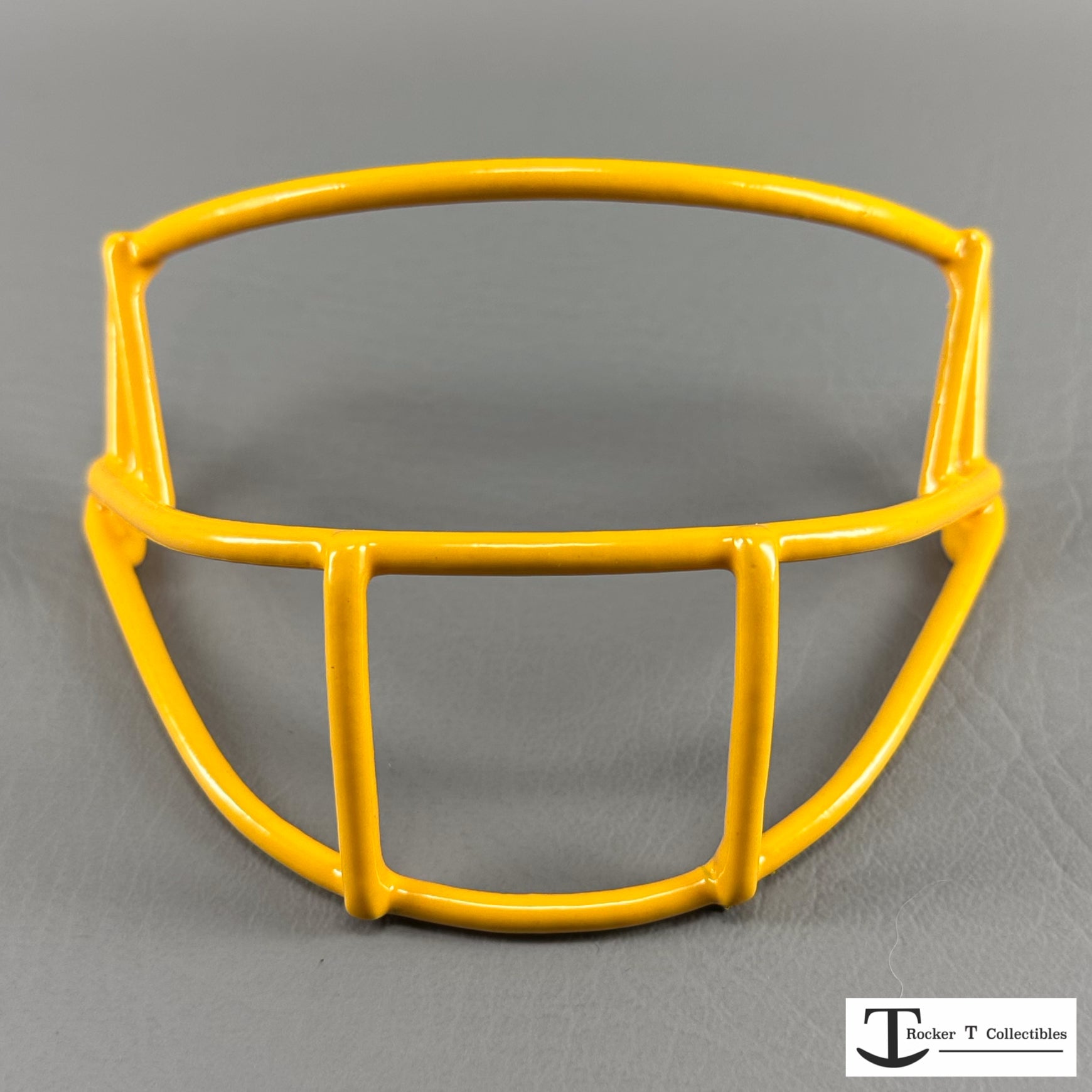 The Throwback Authentic OPO Metal Mini Helmet Facemask is a Rocker T Collectibles exclusive. Unlike the standard wide-spaced Throwback OPO masks, this version removes the center bar and welds a new piece closer to the crossbar, replicating the true 1980s style. Designed to fit Schutt Air and Riddell VSR4 mini helmets, these metal facemasks are coated with plastic just like the full-size originals. Available in various colors, they add a daring, authentic edge to your mini helmet. Facemask clips are not included.