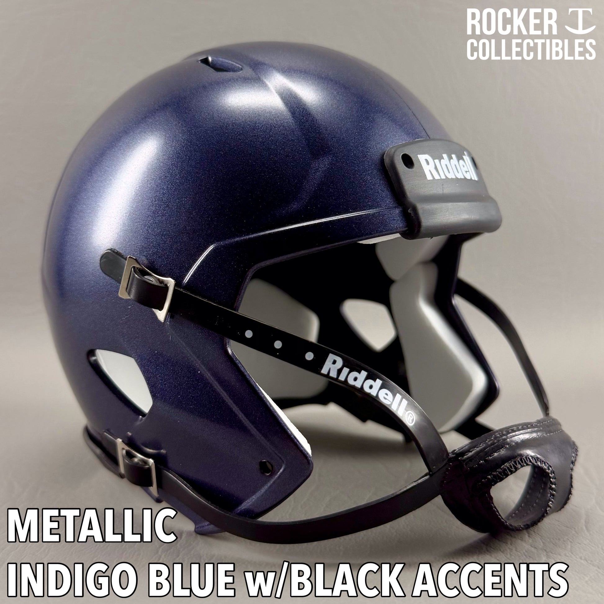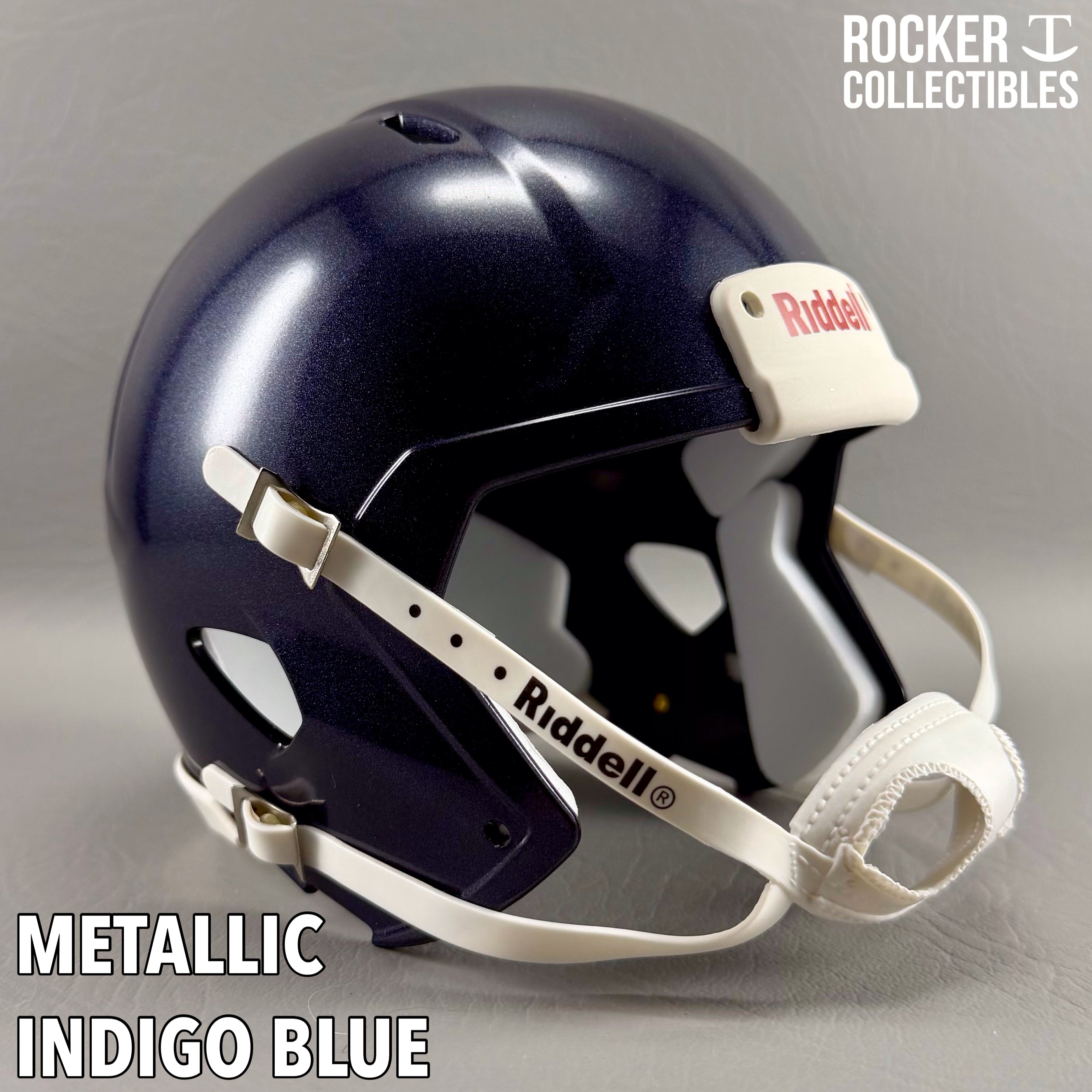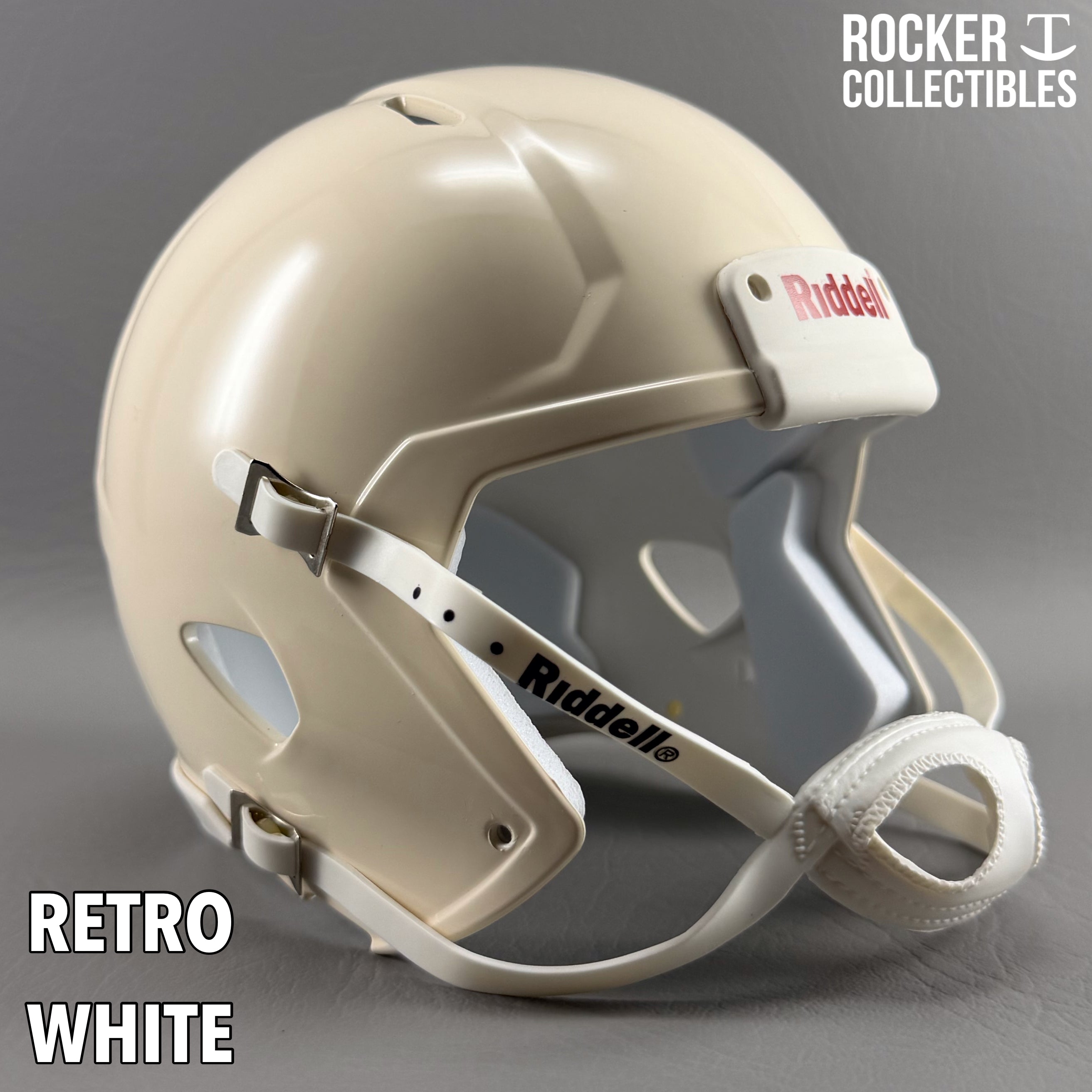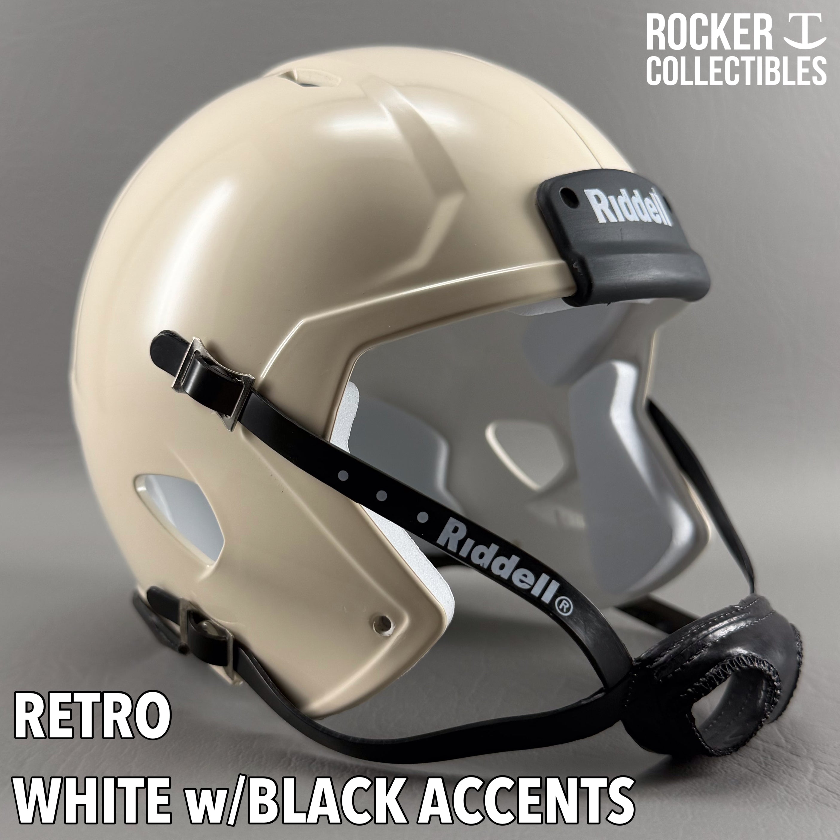 **Some shells now come with a black Riddell label on the white chinstrap. "Pro Style" and Black Accents Shells are not affected by this change. Please email before making your purchase if this is a concern.